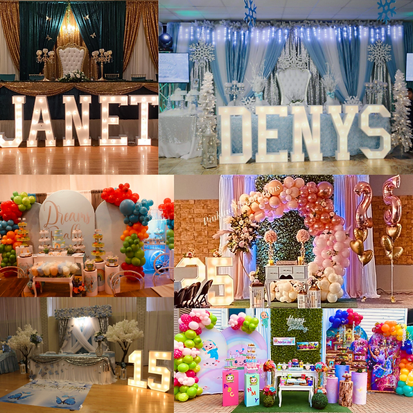 Whether the theme is Quincearena, Wedding, Birthdays (Either Adult or Kids), Gender Reveal, Baby Shower, Baptisms, Corporate Events, etc. Our mission is to strive beyond the materials to incorporate the significances of your event, and following our procesure in details! Find out more details below!